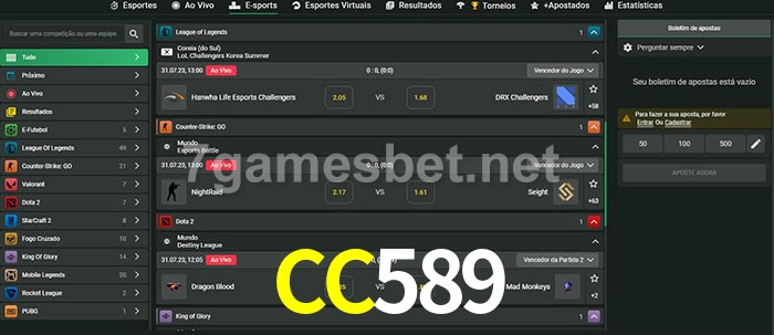 O CC589 oferece uma grande seleção de opções de apostas em e-sports com probabilidades competitivas